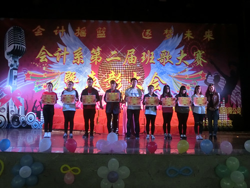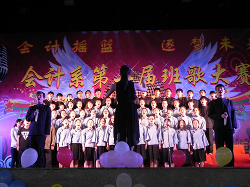 为了丰富校园文化生活,培养同学们的集体荣誉感,增强班级的凝聚力和向心力。会计系于2015年4月15日下午1点在体育馆举行了“会计摇篮,逐梦未来”第二届班歌大赛。出席本次班歌大赛的嘉宾及评委有院团委书记陶元老师,会计系主任徐亚明老师,会计系党总支书记杨军老师,会计系党总支副书记李晓梅老师,会计研究所所长薛茹老师,会计系团总支书记高计龙老师,会计系辅导员王振宇老师以及全体任课老师和班主任。