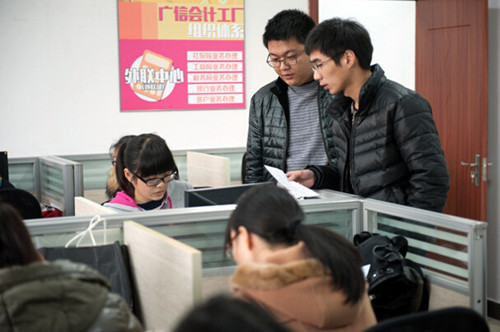 12月1日下午,13会计1班的全体学生在实训课程任课教师薛茹的带领下,聚集在实训楼西101室,暨广信会计工厂的实践教室里,由薛茹老师和企业专家范敏逸、张志梅、何炳霞等人的指导帮助下,完成了真岗实操训练。