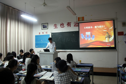 为响应学院“文明修身德育教人”的号召,营造良好的学院风气。浙江长征职业技术学院会计系于2014年9月26日起开展了为期四天的“文明修身,德与我行”的主题活动。会计系全体学生都参加了此次活动。