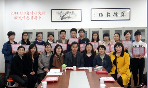 3月19日,会计研究所召开学生科研工作会议,提出要在学习中研究问题,在发展中解决问题,不断培养大学生的创新思维。会上为大学生科研信息员颁发了证书,聘请会计研究所信息员,通过信息员带动大学生科研工作。会议由所长薛茹老师主持,主管领导亲临指导并作了重要讲话,财会学院高晓红院长、财管系刘菁主任、会计系徐亚明主任、杨军书记、康杰副主任、李晓梅副书记等均参加了会议并寄语于学生信息员。