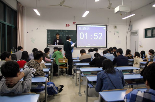 自3月17日晚7时举办了首场辩论赛以来,经过两个星期的舌战,13个班的精英们通过了淘汰赛,产生了4强。辩论涉及大学生就业压力,大学生创业,大学生文凭,互助与竞争精神等多个与大学生密切相关的话题。正反两方各抒己见,一答一问之间思想的碰撞擦出奇迹的火花,选手激烈的争论,辩论,述论直至产生结论,符合辩论的精神:选手在比赛中灵感不断的涌现,幽默的语言让全体评委和观众不禁拍手鼓掌。让所有现场观众及选手在思辨中获得理趣和真知,达到思想上的升华与蜕变。即便赛场上有胜者也有败者,但这并不能让选手们胆怯,反而愈加斗志昂扬,在赛场上演绎了一场又一场精彩的博弈。