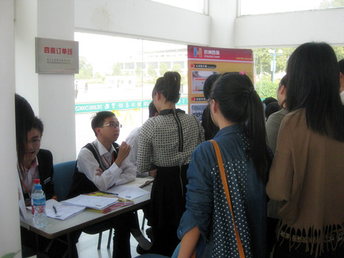 10月24日下午1点,浙江长征职业技术学院商务系10级顶岗实习暨就业专场招聘会在行政楼大厅正式拉开帷幕。前来招聘的单位有沃尔玛公司、顺丰公司、杭州四喜公司、杭州鼎好科技有限公司等十几家企业。同时学院副院长杜宝山、商务系系主任李庆海及校企合作处处长张敬伟出席了此招聘会。