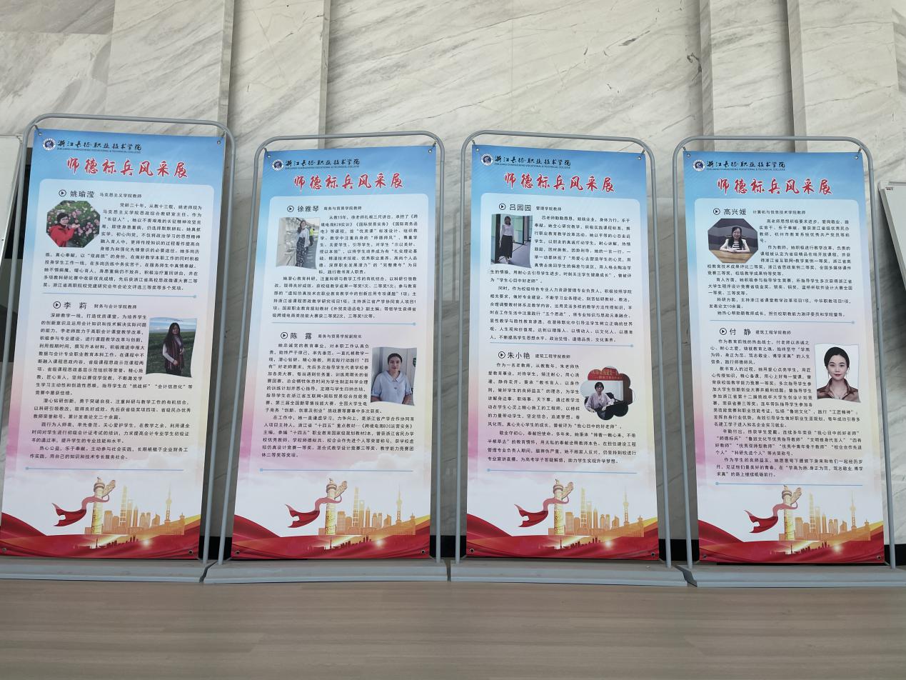 为树立优秀教学典型,激发广大教师秉持教育初心,坚持立德树人,不断提高教学能力和育人水平,学校对评选出的19位师德标兵进行了表彰,并通过学校网站、易拉宝展架、微信公众号等多种平台,多种形式展示优秀教师风采,切实讲好学校教书育人的好故事。