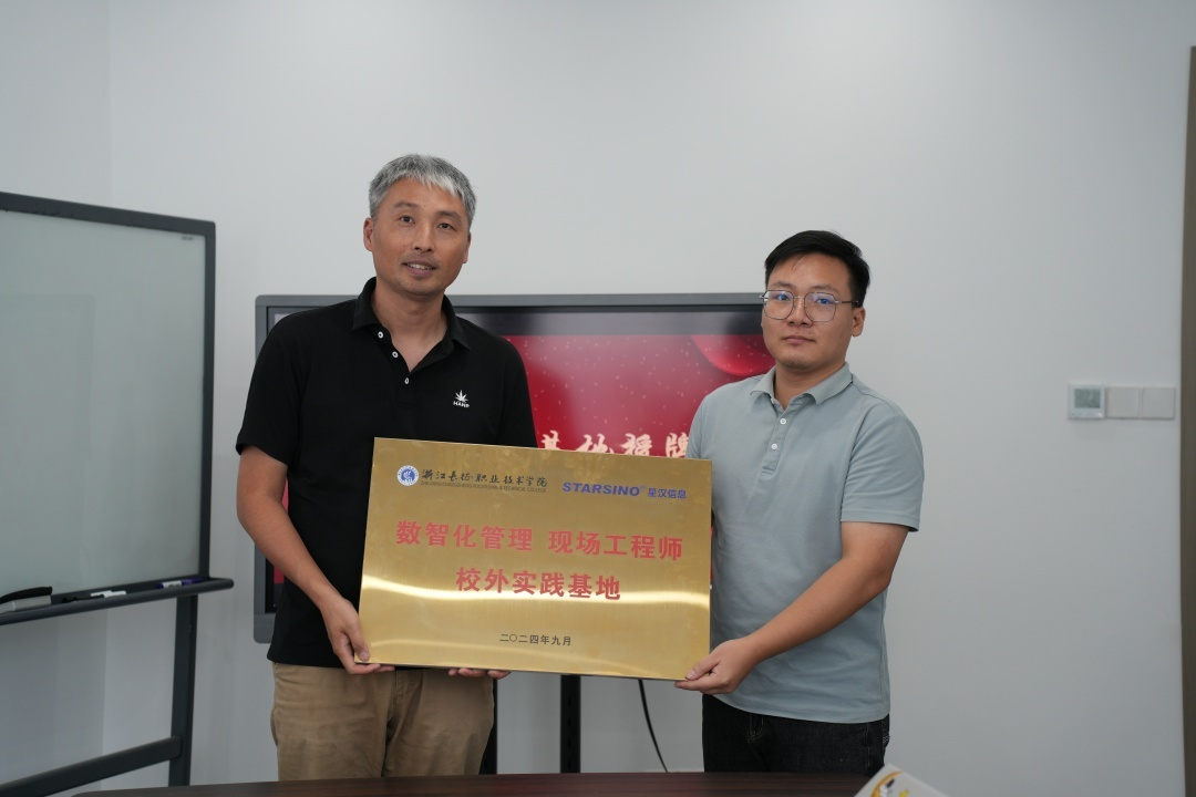 在协议签订环节,双方代表郑重签署了战略合作协议,同时,学校教务处副处长吴少俊代表学校向星汉公司授予了校外实践基地的牌匾,标志着双方将在人才培养、科研合作等方面开展更加紧密、深入的合作。