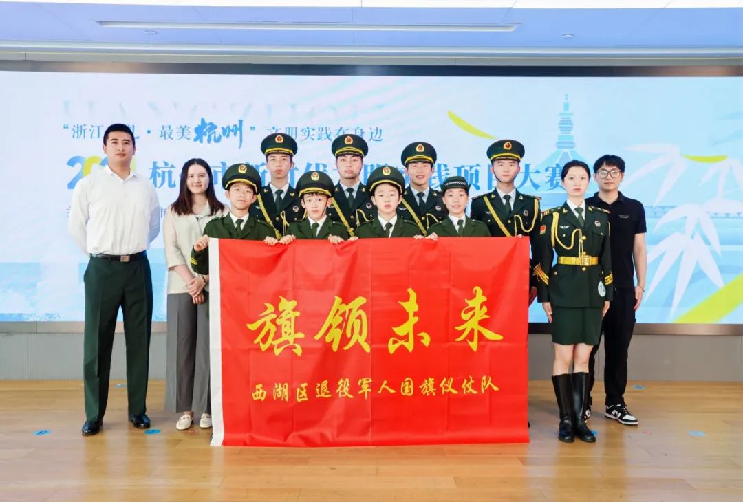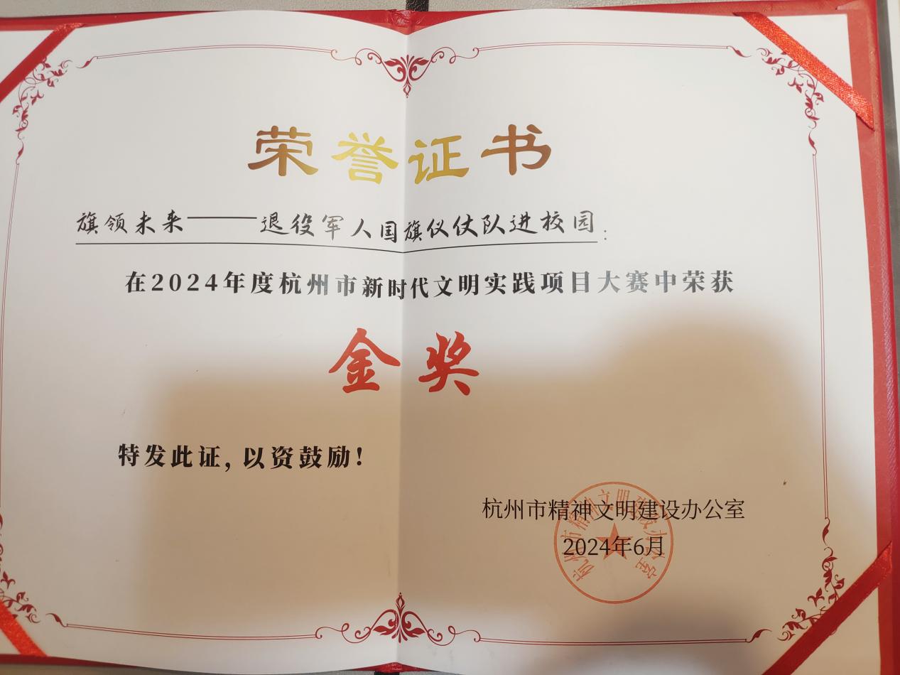 10月10日-11日,在第二届浙江省退役军人志愿服务项目大赛决赛中,由我校退役学生徐家乐、金宇昕、周稼明、马森森参与的“西湖区‘旗领未来’退役军人国旗仪仗队进校园”项目在进入决赛的30个优秀项目中脱颖而出,荣获金奖!这是该团队继获得浙江省新时代文明实践项目金奖,杭州市第二届退役军人志愿服务项目大赛金奖,2024年杭州市新时代文明实践项目大赛金奖后,斩获的第四个金奖。