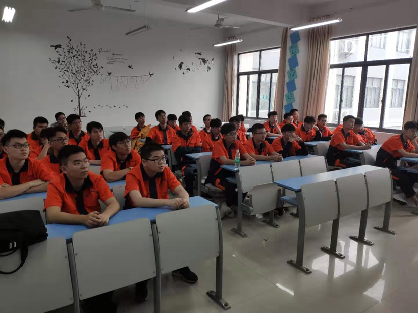 在宣讲过程中,2018级汽电班的同学们统一服装、聚精会神、认真地听着。会后还向朱主任咨询相关的问题。通过本次宣讲会,浙江长征职业技术学院与吉利集团合办的汽车电子技术专业学徒班正式开启。