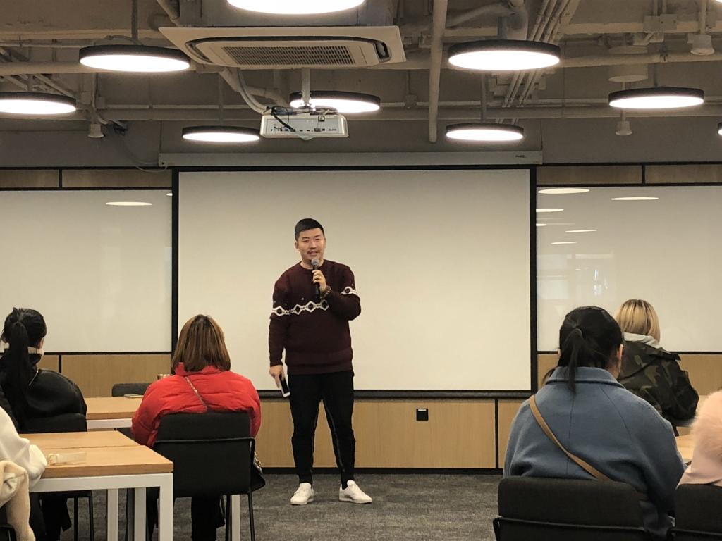 同学们首先参观了WeWork联合办公社区,开放式的创意公共休闲区、专属办公区域、公共办公桌、不同规模高科技的会议室等,直观地感受了全球社区联合办公的优势。接着公司的两位老总分别做了题为《大学生了没》的就业指导讲座。麦翔经理结合自身的学习、工作和生活经历帮助同学们正确认识自己的世界观、人生观和价值观,并引导大家积极思考毕业前自己想要什么、该干什么以及要学什么。同时,建议大家珍惜时间、珍惜老师和同学,学会自主学习,实现自我成长。沈鹏总经理从“与时间为友”和“人际关系学”的角度和同学们畅谈人生财富及职场的人际沟通。沈总侃侃而谈、诙谐幽默地从同学们的兴趣爱好引出珍惜时间的话题,再从以收割我们时间而成就事业的大咖们谈到专注力和注意力的宝贵,最后提出他的做人和成长理念:只有先使自己变得优秀才能遇到贵人,并一步一步地往上爬。期间,沈总还不时地介绍了一些培养文化修养、提升自我创造力、丰富人生的方法和途径。此外,更是分享了一些经典的职场人际交往语料。