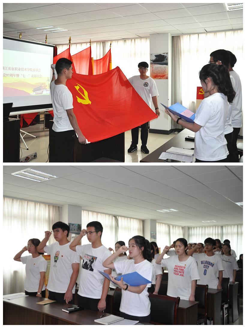 6月29日下午,我校在党员之家举行庆祝建党97周年暨“七一”表彰大会,党委书记、常务副院长王其军、正院级巡视员洪永铿、副院长杜宝山、许迈进等领导出席会议,各系部党总支书记和职能部门负责人、各系党员代表、受表彰党员和新入党党员代表参加,会议由党委书记、常务副院长王其军主持。