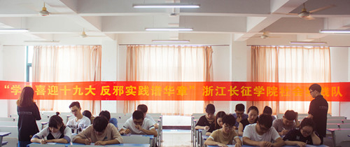 为了解我院学生对邪教的认知现状,扩大反邪教宣传力度,及时发现反邪教工作存在的不足,2017年6月20日—6月21日,我院暑期反邪教社会实践队在我院各系开展了以“学子喜迎十九大反邪教实践谱华章”问卷调查活动。