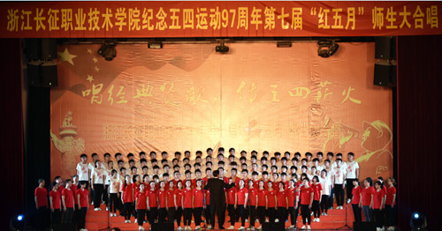 红歌唱响延安精神,党旗飞扬百年辉煌。2016年5月4日下午,我院在体育馆隆重举行了以“唱经典赞歌,传承五四薪火”为主题的浙江长征职业技术学院第七届“红五月”师生大合唱。大合唱邀请了周边共建单位以及各兄弟院校的声乐指导老师担任评委。学院执行院长、正院级巡视员洪永铿,学院副院长杜宝山,党委副书记、副院长王其军,党委委员、工会主席洪骏,党委副书记、纪委书记张乐弟等学院领导出席本次活动。现场1000多名师生一起观看了比赛。