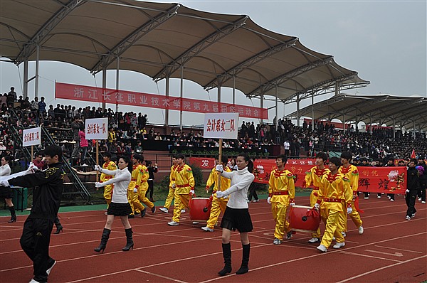 接着学院执行院长吕振合教授宣布:“浙江长征职业技术学院第九届田径运动会开幕。”运动场上顿时礼炮齐鸣、响起了热烈的掌声和欢呼声。