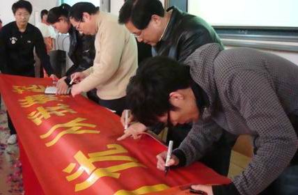 我院迎评估工作已进入攻坚阶段,新征程的号角已经吹响,“迎评促建”对于我们每一位长征人来说,都是一次考验,一份责任,也是一次机遇。校兴我荣,校衰我耻。为积极响应学院迎评促建活动的开展,积极营造浓厚的迎评氛围,2010年3月16日下午, 以“全院动员 迎评创优 从我做起”“为主题的“学生干部动员大会”暨学生公寓‘迎评促建’活动月开幕式在1318教室隆重拉开帷幕。院党委副书记洪骏、学生处处长富荣辉、学生处副处长陈南荪、院团委书记陶元、公寓管理科科长郑鲜等出席了开幕式,参加开幕式的还有各系辅导员、公寓辅导员有关老师及学生组织代表等。 开幕式上,院党委副书记洪骏为“迎评促建”活动月开幕式致开幕辞。学生代表何励同学宣读了“倡议书”,学生干部代表温璐同学作了发言。通过主持人介绍“迎评促建”活动月的系列活动,接下来将陆续进行“迎评促建,爱我公寓共建美好家园”万人签名活动、学生公寓星级寝室评比活动暨寝室卫生宣传周活动、“创优质服务,建节约公寓”我为“评估做贡献”、学生公寓“迎评促建”十项建设宣传周、首届“迎评杯”叠被子比赛、迎评杯”书法大赛活动策划书、学生公寓“迎评促建”宣传海报比赛、“迎评促建”知识竞赛等各类丰富多彩的活动,使“迎评”深入人心,并广泛动员和组织学生以“主人翁”的积极主动心态投入到我院“迎评促建”的各项活动中去,树立良好的榜样和先锋带头作用。 学生干部动员大会结束后,在场院领导、老师和学生都有秩序地在“迎评促建,我为迎评做贡献”和“迎评促建,爱我公寓共建美好家园”两条横幅上签上自己的名字,以表“迎评有我“的决心。