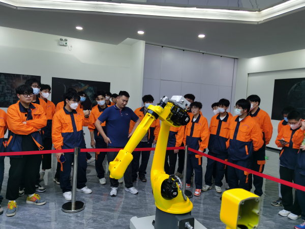 在龙盛工贸工作人员为大家详细介绍了企业的发展历程、整体概况、企业文化、未来发展趋势、员工待遇及用人要求,并带领产业学院师生一行参观了龙盛工贸科技感十足的磨抛机器人展示厅及装配车间,学生们实地零距离感受到了龙盛工贸企业的文化理念,切身感受到了企业的工作环境及岗位工作流程,从而激发了同学们的学习和就业热情,对培养学生爱专业、乐学习、勤练技能的学习意识有积极推动作用,为同学们今后的实习工作奠定良好的基础。