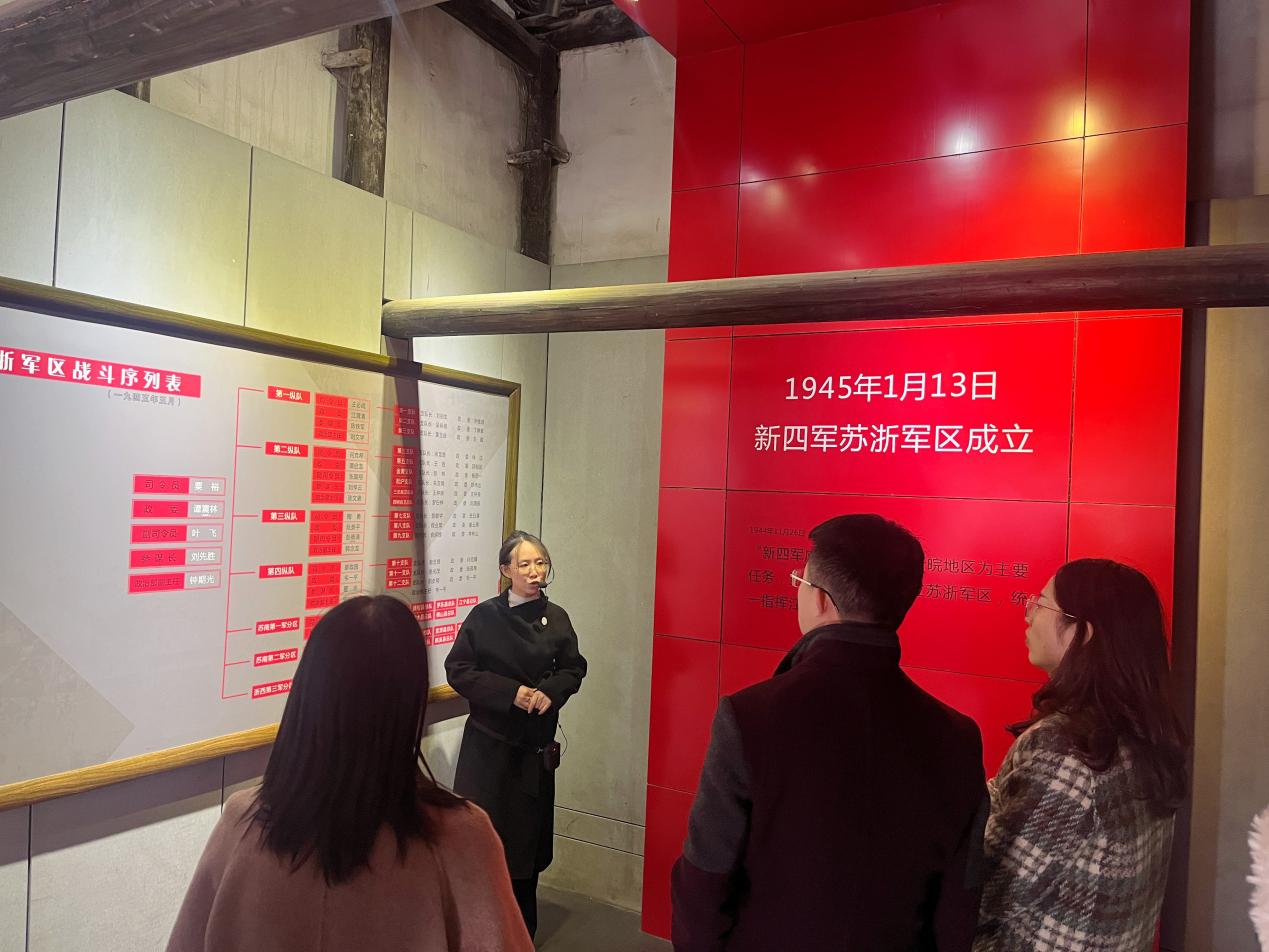 在纪念馆内,跟随着讲解员深情并茂的讲解,党员师生们循着革命先辈的红色足迹,在各种老照片、文献资料以及历史文物中,了解新四军苏浙军区在抗战时期的英勇事迹,重温苏浙军民在粟裕将军领导下抗击日伪、建立苏浙解放区的重要历史。