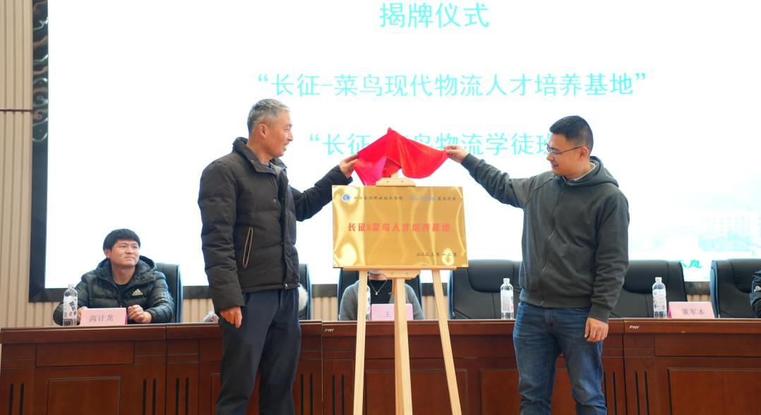 随后,吴少俊与董军本为“长征-菜鸟现代物流人才培养基地”揭牌,王珍与薛永军为“长征-菜鸟物流学徒班”揭牌。菜鸟物流公司代表为学徒班学员颁发了录用证书。