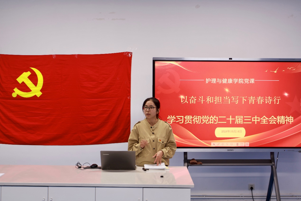 为深入学习贯彻党的二十届三中全会精神,做好入党积极分子的培养、教育和考察工作,近日,护理与健康学院在实训楼北207室开展了第六期业余党校开班典礼暨党课第一讲。护理与健康学院党总支书记张泱、副书记蒋霄蕊,以及教师代表和74位学员参加了开班典礼。