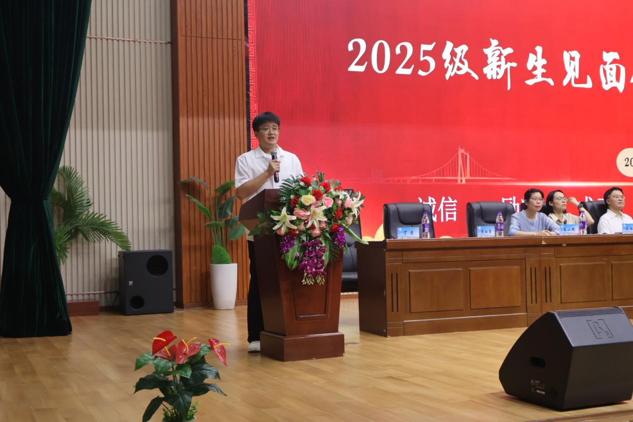 杨琼致开幕辞。她向2025级新生表示欢迎,随后通过建工学院在各类学科竞赛、技能比拼中斩获的累累硕果,展现学院的学科实力与育人成效,让他们在踏入校园之初,便深刻感受到作为“建工学子”的自豪感。