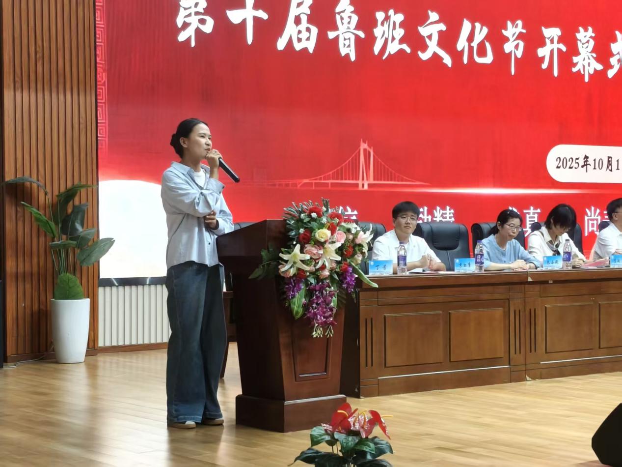 教师代表龚妹为新生们解读了各专业的培养目标与就业前景,介绍了本届鲁班文化节系列活动的具体赛项。她鼓励新生们勇敢站上竞赛舞台,在专业能力的锤炼与综合素养的提升中,以团队协作凝聚力量,结下同窗情谊。
