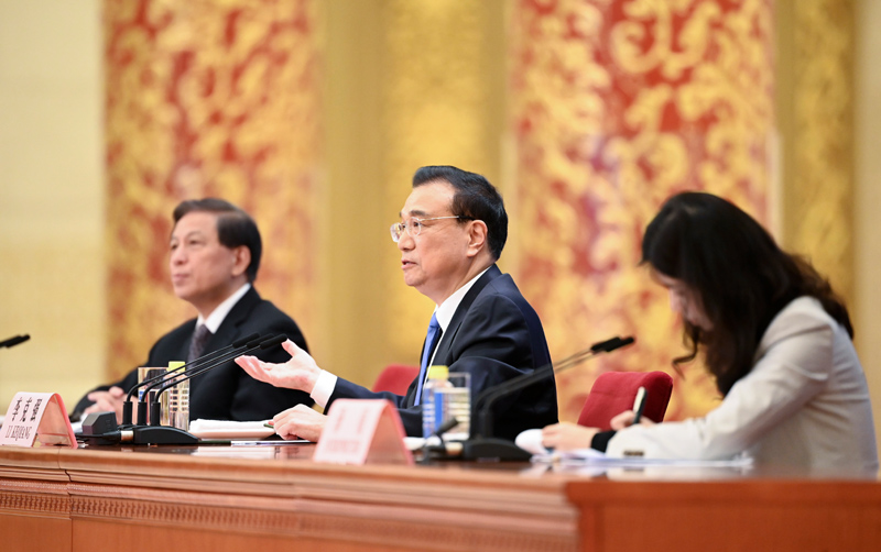 3月11日下午,十三届全国人大四次会议在北京人民大会堂举行记者会,国务院总理李克强应大会发言人张业遂的邀请出席记者会,并回答中外记者提问。新华社记者 陈晔华 摄