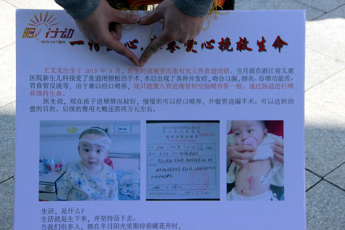 为培养学生对社会的责任感,使命感,并带动周围更多的人加入爱心行列,播散爱心,收获爱心。2014年3月22日,建工系团总支学生会青协全体成员以及各部门代表参加了在吴山广场举行的由浙江省文明办爱心事业基金会主办的“一份真情,一份爱心”活动, 为患有先天性食道闭锁的10个月大的男孩王文龙做募捐。