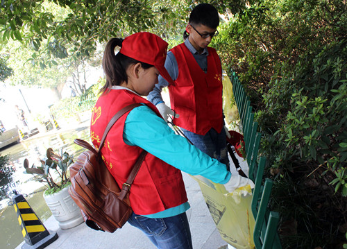 2015年10月11日上午8时,建工系在西湖开展以“服务进社会,爱心暖人心”为主题的志愿活动。我系派出数十位志愿者前往西湖风景区参加本次活动。